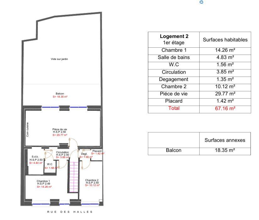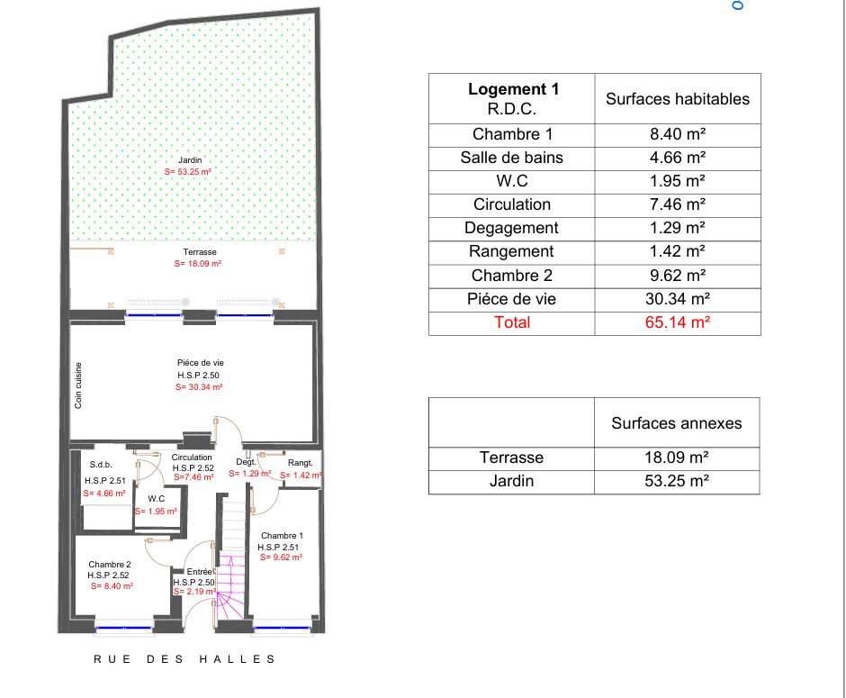 Surface de 65 m2 à 67 m2